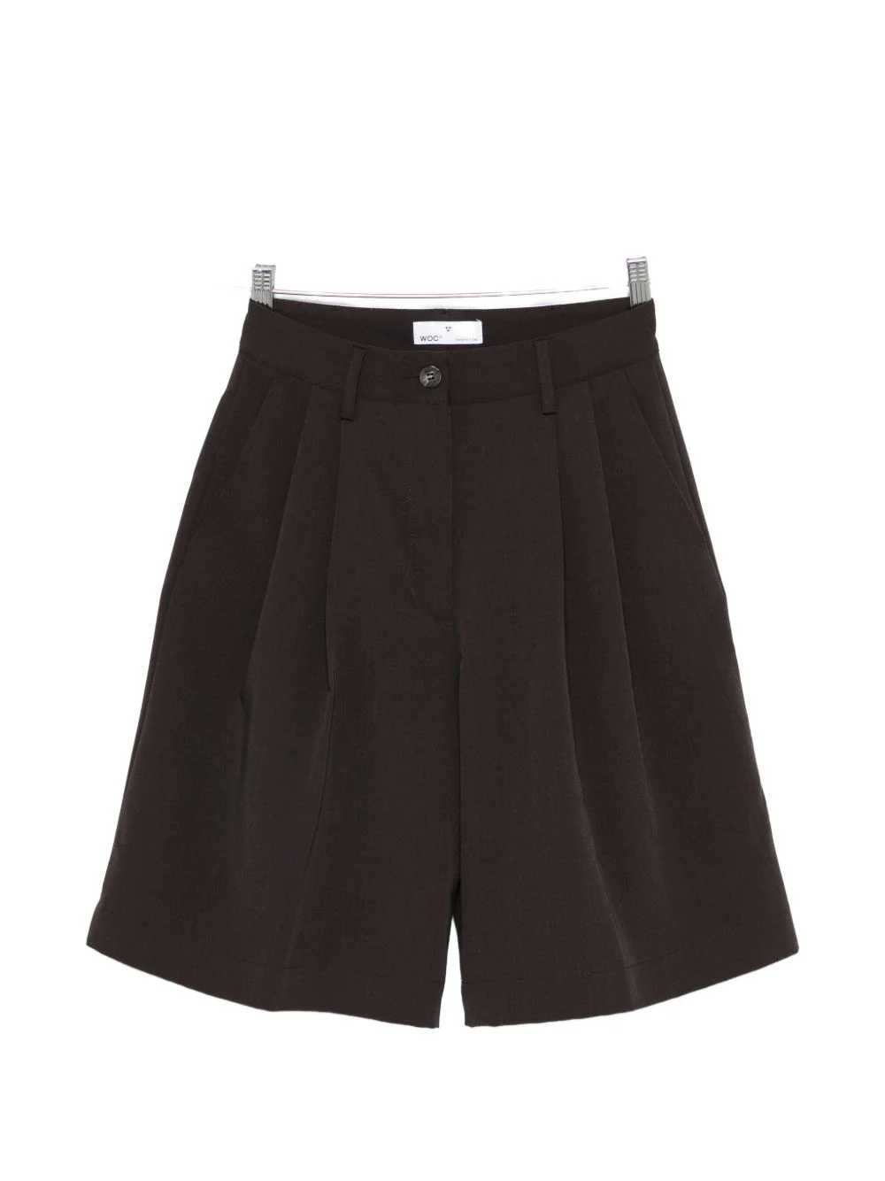 Gli shorts marroni woc da donna uniscono un design essenziale a una linea pulita, con vita strutturata e passanti per cintura. Le pieghe frontali e la gamba ampia valorizzano la vestibilità, offrendo libertà di movimento e uno stile contemporaneo.Le tasche laterali inserite nella cucitura aggiungono funzionalità alla categoria short, mantenendo un profilo ordinato e raffinato. Scopri questi shorts sullo store online Di Pierro Brand Store.