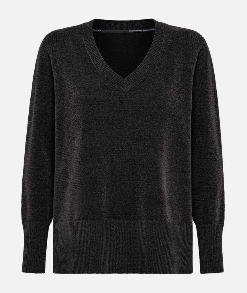 Caratterizzato da un'estetica essenziale e al tempo stesso sofisticata, questo pullover in morbida ciniglia conquista per la sua eleganza naturale e il comfort avvolgente. Il profondo scollo a V e i delicati spacchi laterali donano leggerezza e femminilità alla silhouette, mentre la texture soffice e vellutata accarezza la pelle con raffinata delicatezza. Le spalle strutturate con punto sella, insieme ai polsini e al bordo inferiore dalle proporzioni marcate, testimoniano la cura sartoriale che definisce ogni dettaglio. Versatile e impeccabile in ogni occasione, è il capo ideale per interpretare con disinvoltura uno stile sofisticato dal gusto contemporaneo.