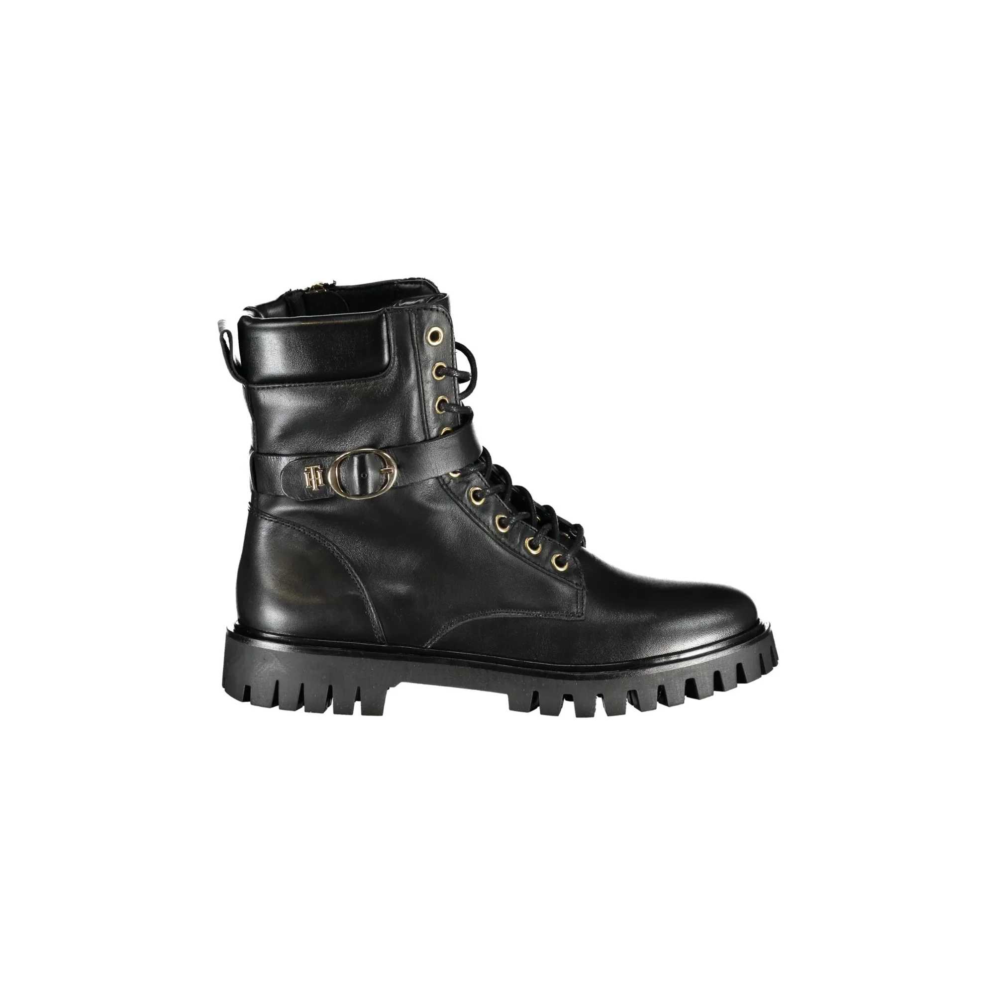 TOMMY HILFIGER - Tommy Hilfiger Stivaletti Pelle Donna Nero Lacci e Zip Laterale