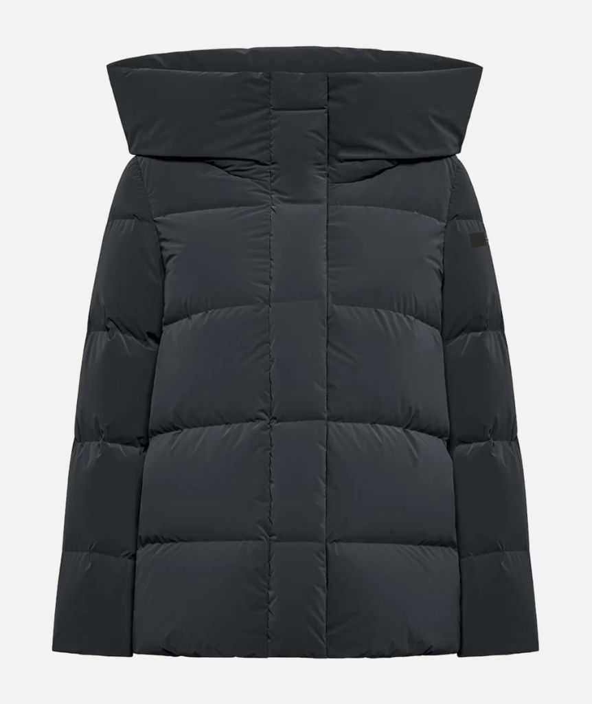 La reinterpretazione moderna e dinamica di un classico del guardaroba invernale si caratterizza per il taglio boxy e l'anima cocoon. Il piumino con lunghezza in vita è impreziosito da un ampio e avvolgente cappuccio. La finitura delicatamente cangiante del tessuto spalmato di silicone e la morbidezza al tatto conferiscono un tocco di comfort e originalità agli ampi canali tubici termosaldati che contengono l'imbottitura in piuma d'anatra 90/10, particolarmente calda e soffice. Il look essenziale del piumino è accentuato dalla patta abbottonata a pressione, che nasconde la zip termonastrata, affiancata dalle spaziose tasche laterali invisibili. Il logo a microiniezione nero sulla manica sinistra firma la creazione che si abbina perfettamente a una camicia dal taglio maschile e al pantalone carrot, nel creare un look frizzante e contemporaneo.