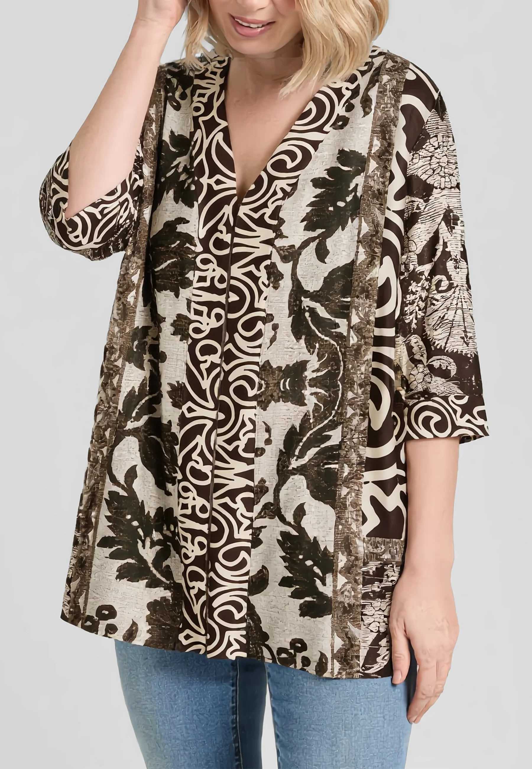 Coprispalle donna curvy Luisa Viola in viscosa fantasia, ideale per completare outfit eleganti con comfort e fluidità. Questo coprispalle giacca donna Luisa Viola della linea Mara Venier è pensato per valorizzare la silhouette curvy con una vestibilità armoniosa e naturale. La lunghezza più ampia e le maniche lunghe donano equilibrio alla figura, mentre il tessuto in pura viscosa offre una mano morbida e una piacevole leggerezza a contatto con la pelle. La fantasia raffinata aggiunge carattere al capo, rendendolo perfetto per arricchire abiti semplici o look più strutturati. Progettato per accompagnare la donna in diversi momenti della giornata, questo coprispalle si adatta sia a contesti quotidiani sia a occasioni più curate, mantenendo sempre un elevato livello di comfort. La linea segue le forme senza costringerle, esprimendo una femminilità sicura e contemporanea. Un capo versatile e ricercato, ideale per chi cerca stile, qualità e attenzione alle proporzioni tipiche dell’universo Luisa Viola.