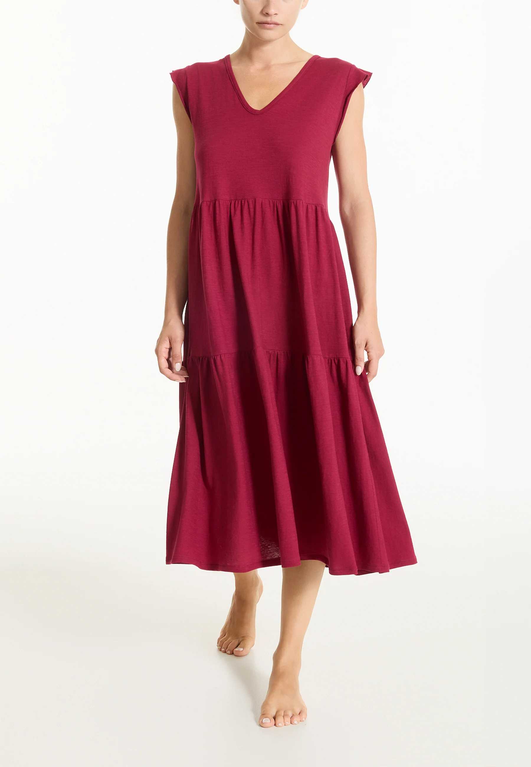 Abito donna smanicato Ragno in maglina di viscosa leggera, pensato per offrire comfort e vestibilità naturale nella stagione estiva. Questo abito da donna Ragno è realizzato in maglina di viscosa fresca e fluida, un tessuto ideale per accompagnare le giornate più calde con una sensazione di leggerezza costante sulla pelle. Il design smanicato e lo scollo a V valorizzano la figura con discrezione, mantenendo una linea semplice e femminile, adatta a diverse occasioni di utilizzo. La lunghezza media rende il capo equilibrato e versatile, perfetto sia per il tempo libero sia per contesti quotidiani più curati. La vestibilità è studiata per seguire le forme senza costringere, garantendo libertà di movimento e comfort prolungato durante l’arco della giornata. Facile da abbinare a sandali, sneakers o accessori leggeri, questo abito rappresenta una soluzione pratica per il guardaroba estivo. La qualità dei materiali e la cura costruttiva riflettono la lunga esperienza Ragno nell’abbigliamento femminile, offrendo un capo affidabile, durevole e pensato per il benessere quotidiano.