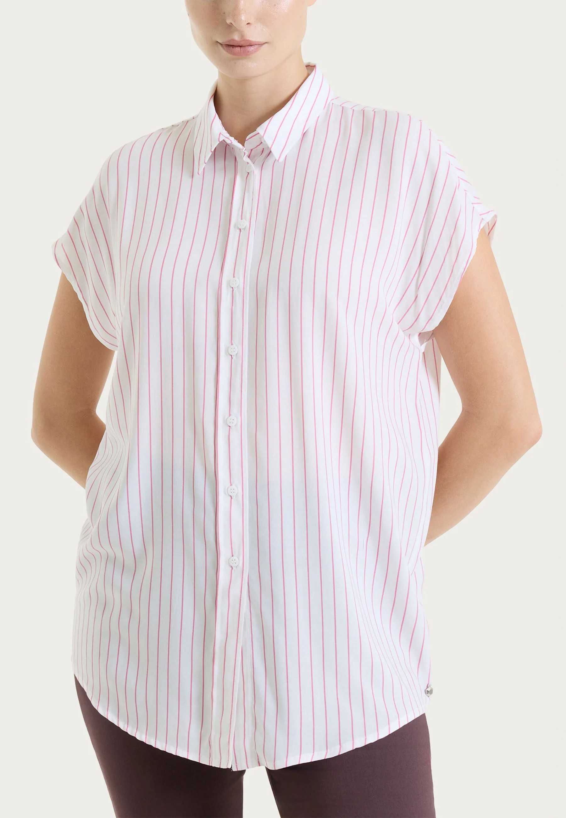 RAGNO - RAGNO Camicia Donna Mezza Manica Cotone Estivo Rigata DS57SM