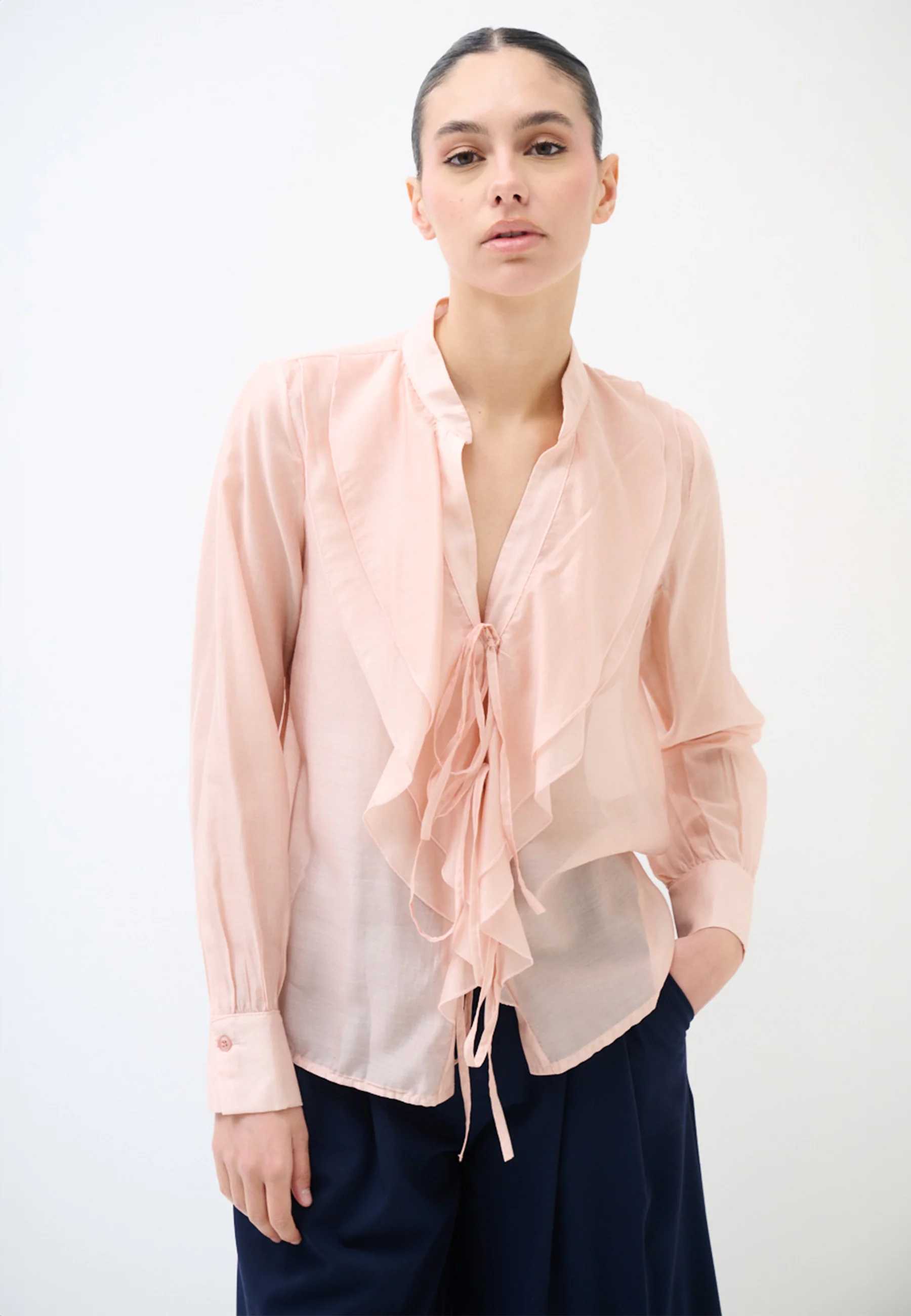 Casacca donna KIKISIX dal gusto romantico e raffinato, ideale per chi cerca un capo femminile e leggero da indossare nella stagione più calda. Dall’immagine emerge una linea fluida con tessuto semitrasparente, perfetto per donare movimento e un’eleganza delicata all’outfit. Lo scollo aperto con laccetti frontali aggiunge un dettaglio morbido e versatile, mentre le ampie rouche verticali valorizzano il davanti con un effetto scenografico ma equilibrato. Le maniche lunghe con polsino definito completano il design con un tocco ordinato e sofisticato, rendendo questa casacca adatta sia ad abbinamenti casual chic sia a look più ricercati. Il tessuto appare fresco e arioso, pensato per accompagnare la donna con comfort e stile durante la mezza stagione e nei periodi più miti. Una proposta KIKISIX Made in Italy che unisce leggerezza visiva, femminilità e versatilità, perfetta con pantaloni eleganti, denim o gonne per creare outfit contemporanei e distintivi.