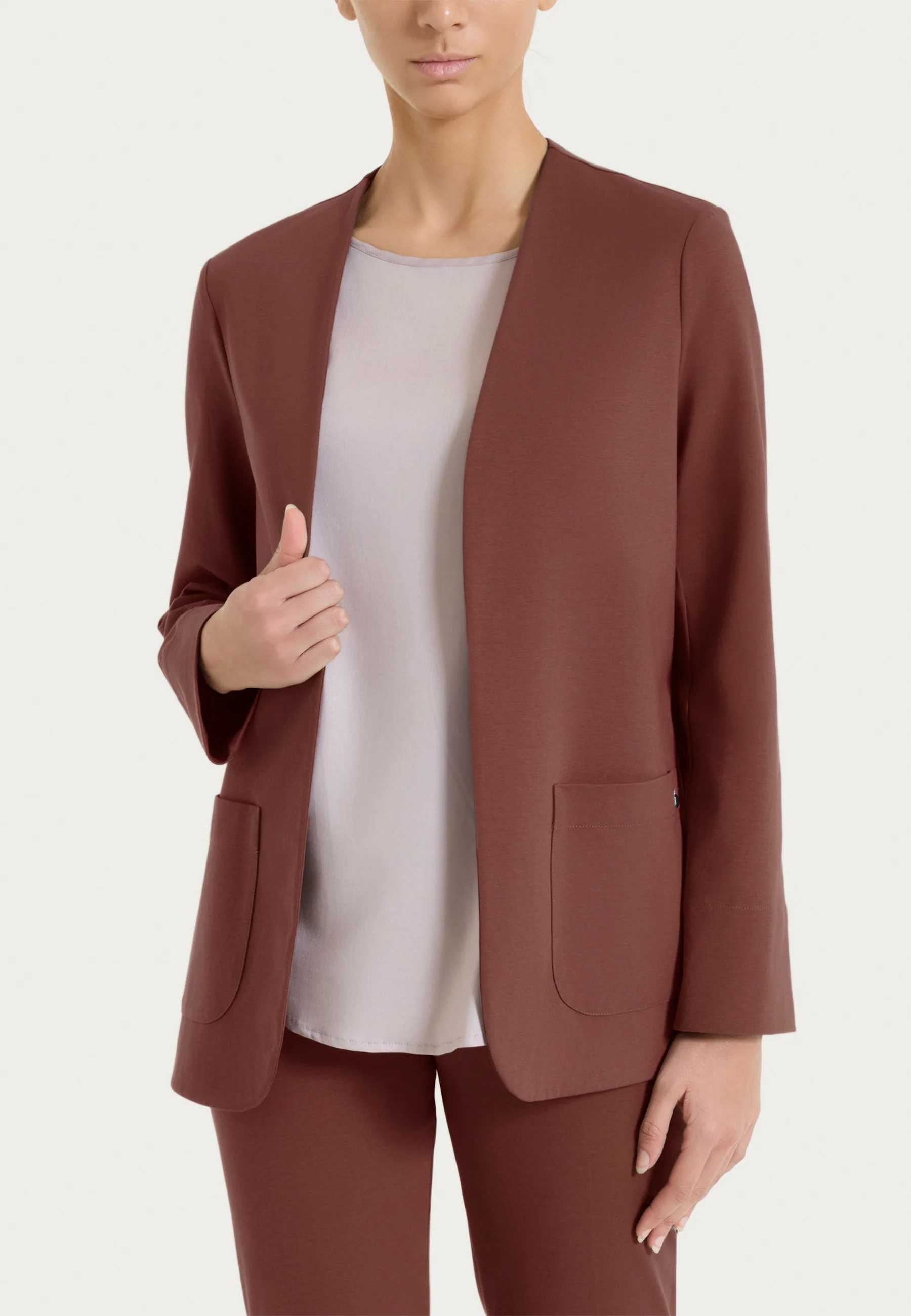 Giacca donna Ragno dal design essenziale, ideale per completare look quotidiani con comfort e sobrietà. Questa giacca da donna Ragno è pensata per offrire una vestibilità equilibrata e una linea pulita, adatta a diverse occasioni della giornata. Il taglio dritto e la lunghezza media valorizzano la silhouette con naturalezza, rendendo il capo facile da indossare e da abbinare. Il tessuto compact light assicura una struttura leggera ma compatta, ideale per affrontare la mezza stagione con comfort e praticità. La chiusura senza bottoni contribuisce a uno stile minimale e contemporaneo, mentre le tasche funzionali aggiungono praticità all’utilizzo quotidiano. Questa giacca si presta a essere indossata sopra maglie, bluse o t-shirt, adattandosi sia a contesti casual sia a situazioni più curate. La qualità dei materiali e l’attenzione alla vestibilità riflettono la lunga tradizione Ragno, da sempre orientata al benessere e alla durata nel tempo. Un capo versatile, pensato per la donna che cerca semplicità, funzionalità e uno stile autentico, capace di accompagnare con discrezione la quotidianità.
