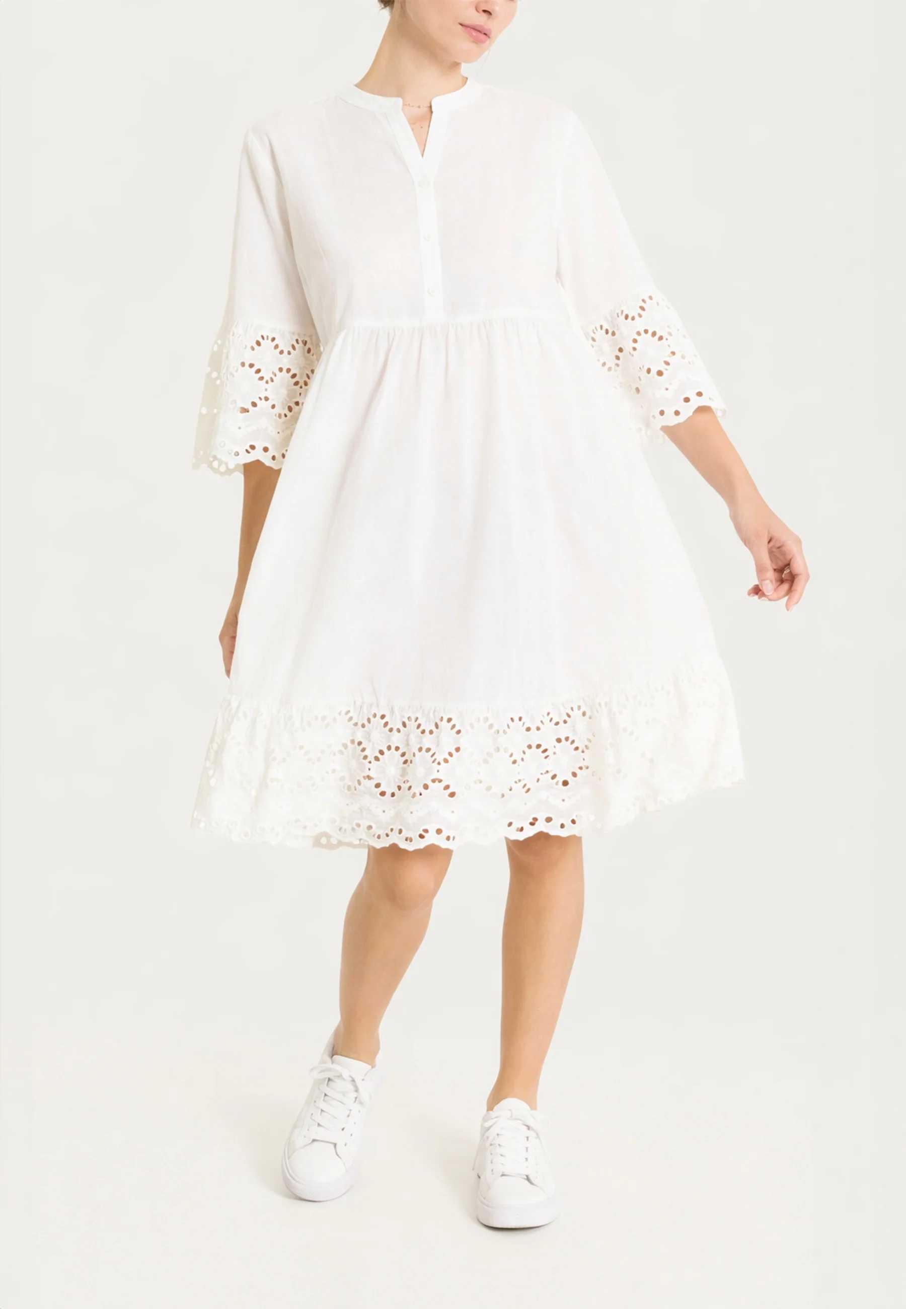 Abito donna Ragno in puro cotone con inserti San Gallo, ideale per uno stile estivo naturale e confortevole. Questo abito da donna Ragno è pensato per accompagnare la stagione estiva con leggerezza e praticità, grazie al tessuto in 100% cotone che assicura traspirabilità e una piacevole sensazione sulla pelle. La manica a tre quarti offre una copertura equilibrata, adatta sia alle giornate più calde sia alle mezze stagioni, mentre la scollatura a serafino aggiunge un dettaglio femminile e discreto al design. Gli inserti in San Gallo valorizzano il capo con una lavorazione delicata e raffinata, mantenendo uno stile sobrio e facilmente indossabile nella quotidianità. La vestibilità è studiata per garantire comfort e libertà di movimento, rendendo l’abito adatto a diverse occasioni, dal tempo libero agli impegni informali. La qualità dei materiali e la cura costruttiva riflettono l’identità Ragno, da sempre orientata a creare capi affidabili, durevoli e pensati per il benessere quotidiano. Un abito essenziale e versatile, ideale per chi cerca semplicità, comfort e stile italiano.