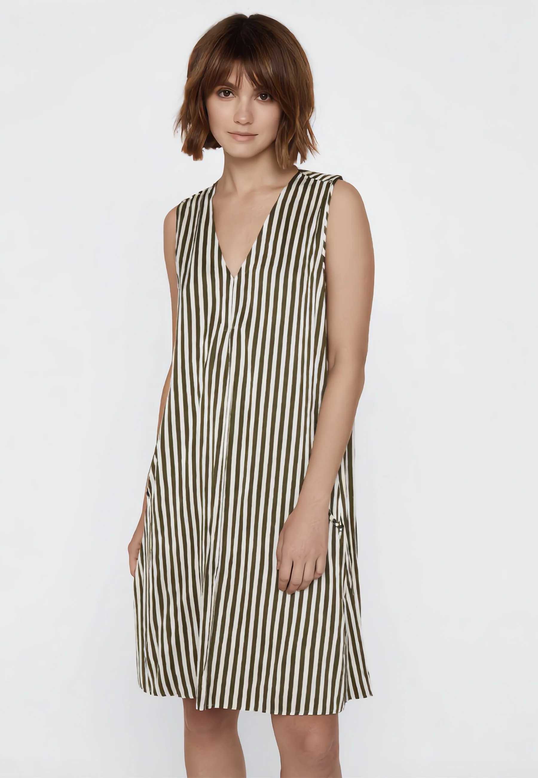 Abito donna Emme Marella smanicato con scollo a V in tela di viscosa leggera, ideale per un’eleganza essenziale e versatile, perfetta dal lavoro al tempo libero. Questo abito da donna Emme Marella interpreta l’eleganza contemporanea con una linea pulita e femminile, pensata per accompagnare la giornata con naturalezza e stile. Il modello smanicato con scollo a V valorizza la silhouette con equilibrio, mentre la presenza delle pinces centrali contribuisce a una vestibilità ordinata e armoniosa. La tela di viscosa leggera offre comfort e fluidità, risultando piacevole sulla pelle e adatta a un utilizzo prolungato. Le tasche laterali aggiungono un tocco funzionale e moderno, rendendo l’abito pratico senza rinunciare all’eleganza. Facile da abbinare a calzature e accessori diversi, questo capo si presta a look professionali così come a occasioni più informali. La qualità dei materiali e la cura dei dettagli riflettono pienamente l’identità Emme Marella, brand del gruppo Max Mara riconosciuto per gusto italiano e affidabilità. Un abito raffinato e attuale, ideale per una donna dinamica che cerca stile, comfort e versatilità senza eccessi.