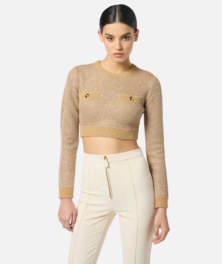 ELISABETTA FRANCHI - Top in maglia con paillettes