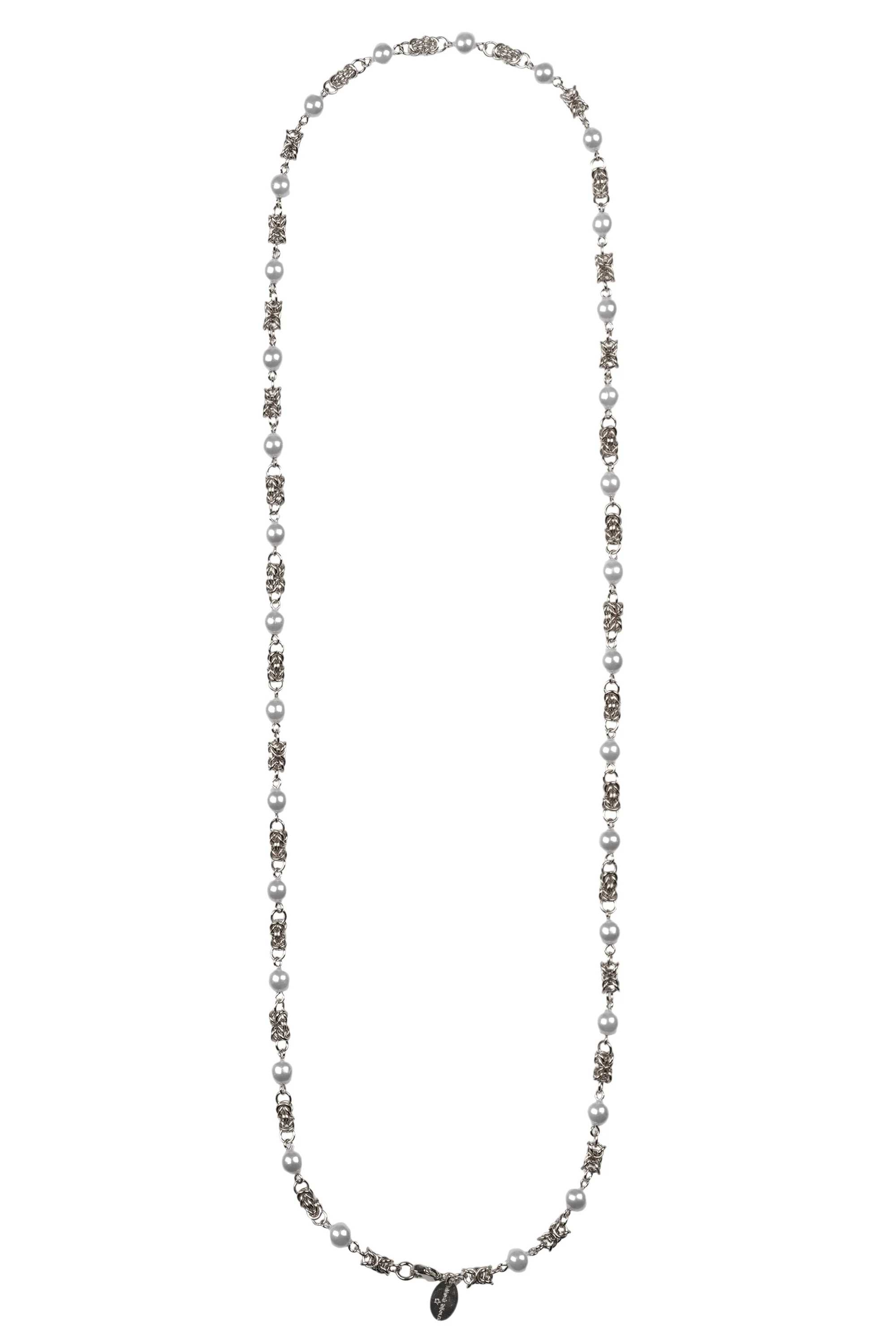 Design elegante: La collana Aleva' Bijoux presenta un design raffinato con perle e catena che conferisce un tocco di eleganza ad ogni outfit. Realizzata a mano: Ogni pezzo è realizzato a mano con cura e attenzione ai dettagli, garantendo un prodotto di alta qualità. Materiali di alta qualità: La collana è realizzata in metallo di alta qualità, assicurando resistenza e durata nel tempo. Versatile: Grazie alla sua lunghezza di 90 cm, la collana può essere indossata in diverse maniere, adattandosi a diverse occasioni e stili. Chiusura sicura: La chiusura a moschettone assicura una perfetta tenuta e facilità nell'indossare e togliere la collana. Made in Italy: Prodotto interamente in Italia, garantisce l'alta qualità e l'eleganza tipiche del design italiano. Accessorio must-have: Un accessorio che non può mancare nel guardaroba di ogni donna in cerca di stile e raffinatezza. - Collana con perle e catena. Lunga catena con alternanza di segmenti. Segmenti composti da perle. Segmenti composti da maglie a catena lucida. Chiusura a moschettone. Lunghezza: 90 cm. Composizione: metallo. Realizzata a mano. Made in Italy. Un accessorio versatile e raffinato per completare ogni look con un tocco di eleganza.Nessuna informazione disponibile