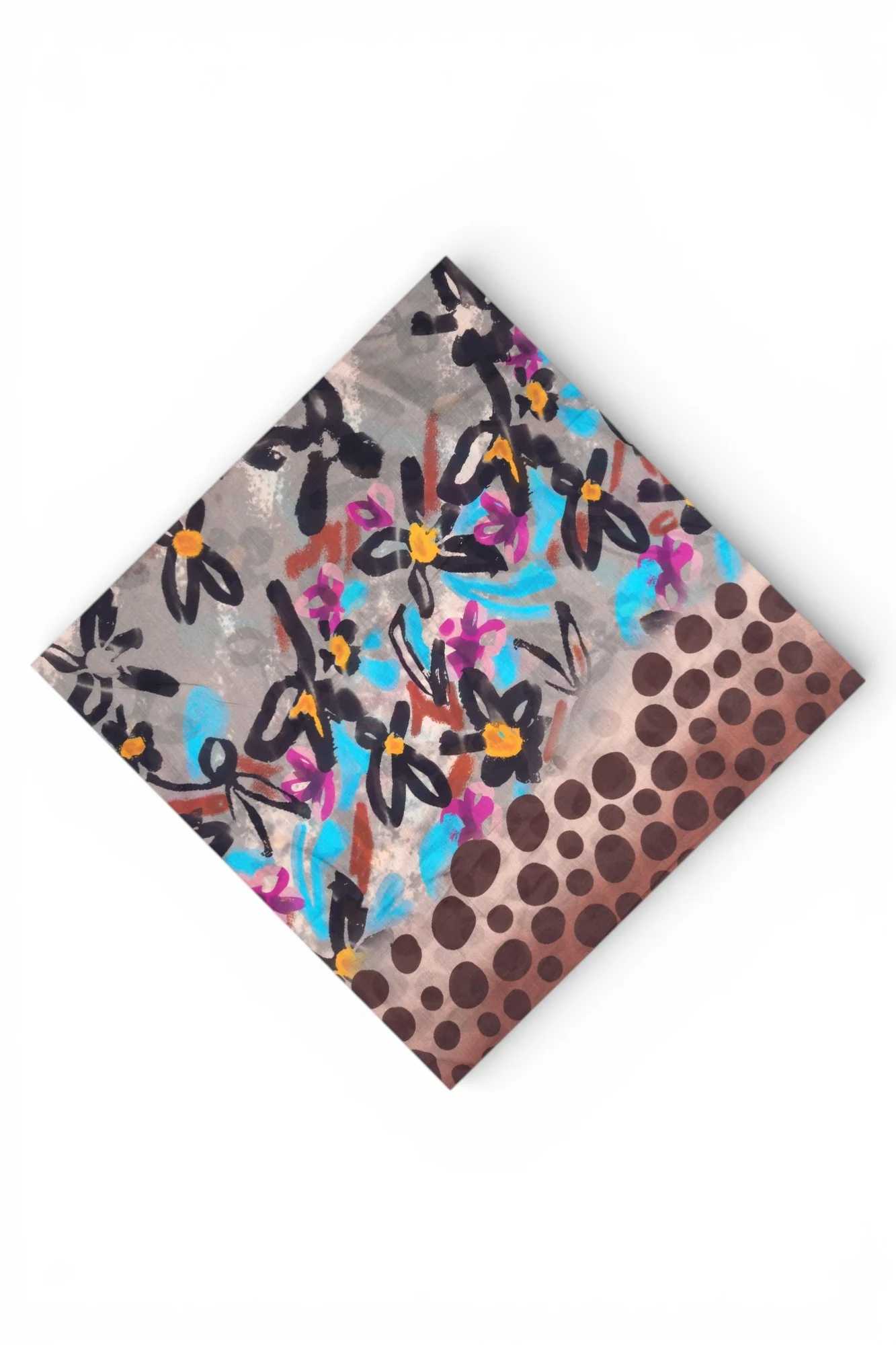 Sciarpa con stampa floreale e pois. Bordo rifinito. Dimensioni: 135 x 135 cm. Composizione: 80% cotone; 20% seta. Made in Italy. Un accessorio versatile per aggiungere un tocco di colore e fantasia a qualsiasi outfit.Nessuna informazione disponibile