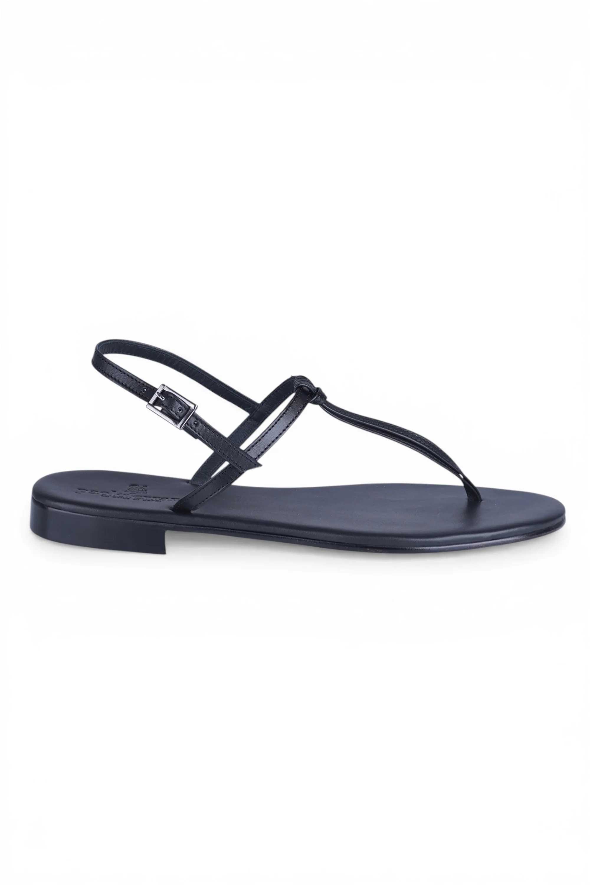 Sandali infradito in nappa. Cinturino sottile alla caviglia con fibbia regolabile. Punta aperta. Suola in cuoio. Tacco piatto. Altezza tacco: 1,5 cm. Composizione: 100% nappa. Calzata: regolare. Made in Italy. Un classico intramontabile che unisce artigianalità caprese ed eleganza quotidiana.Nessuna informazione disponibile