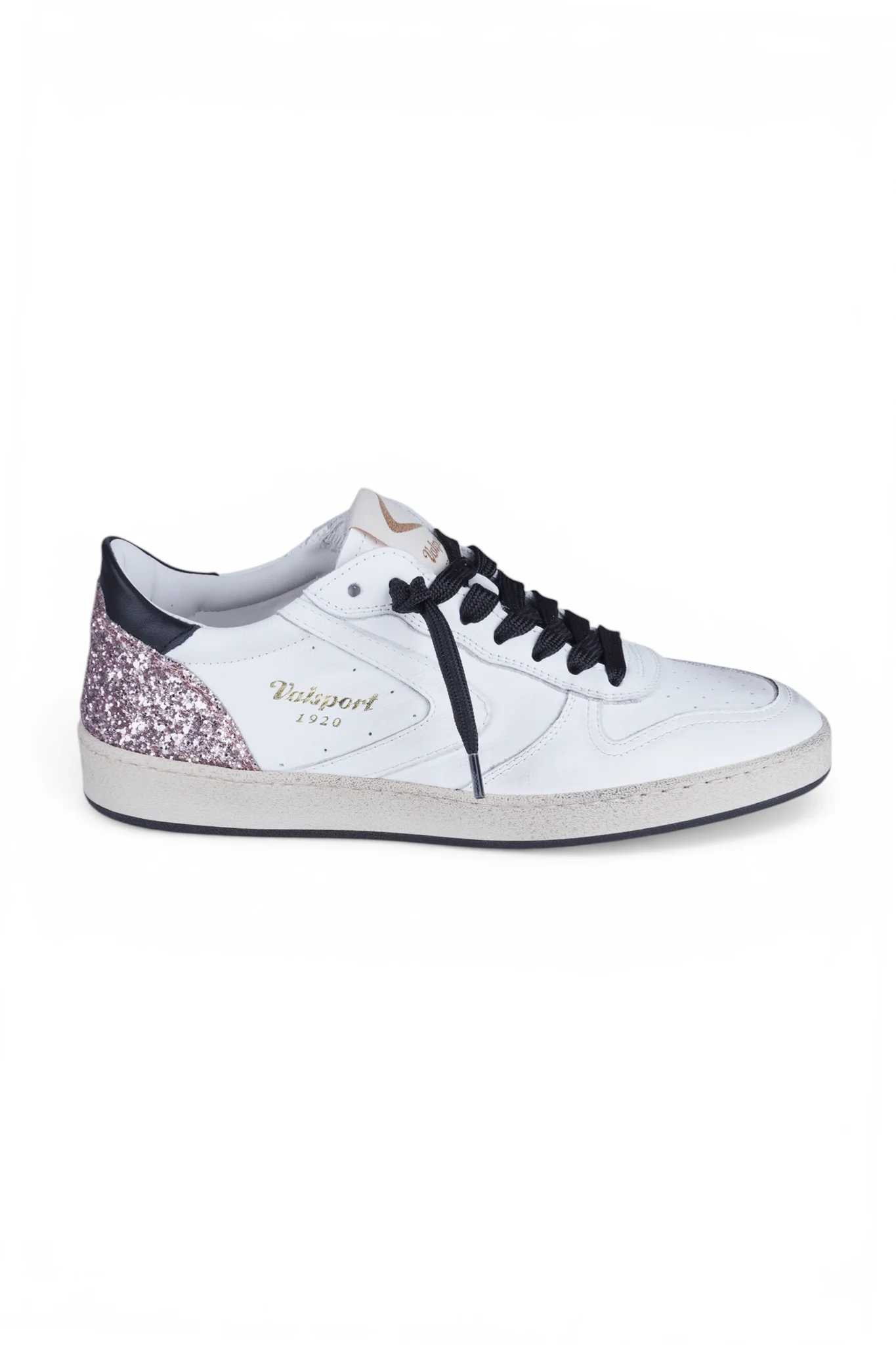 Sneakers Davis Glitter. Dettaglio tallone in glitter. Linguetta sul tallone in pelle. Lacci piatti neri in cotone. Punta traforata. Logo "Valsport 1920" stampato in oro sul lato. Interno in pelle. Soletta in pelle regolabile. Suola in gomma con effetto vissuto. Altezza suola: 2 cm. Composizione: 100% pelle. Calzata: regolare. Made in Italy. Un tocco di brillantezza per un look casual chic.Nessuna informazione disponibile
