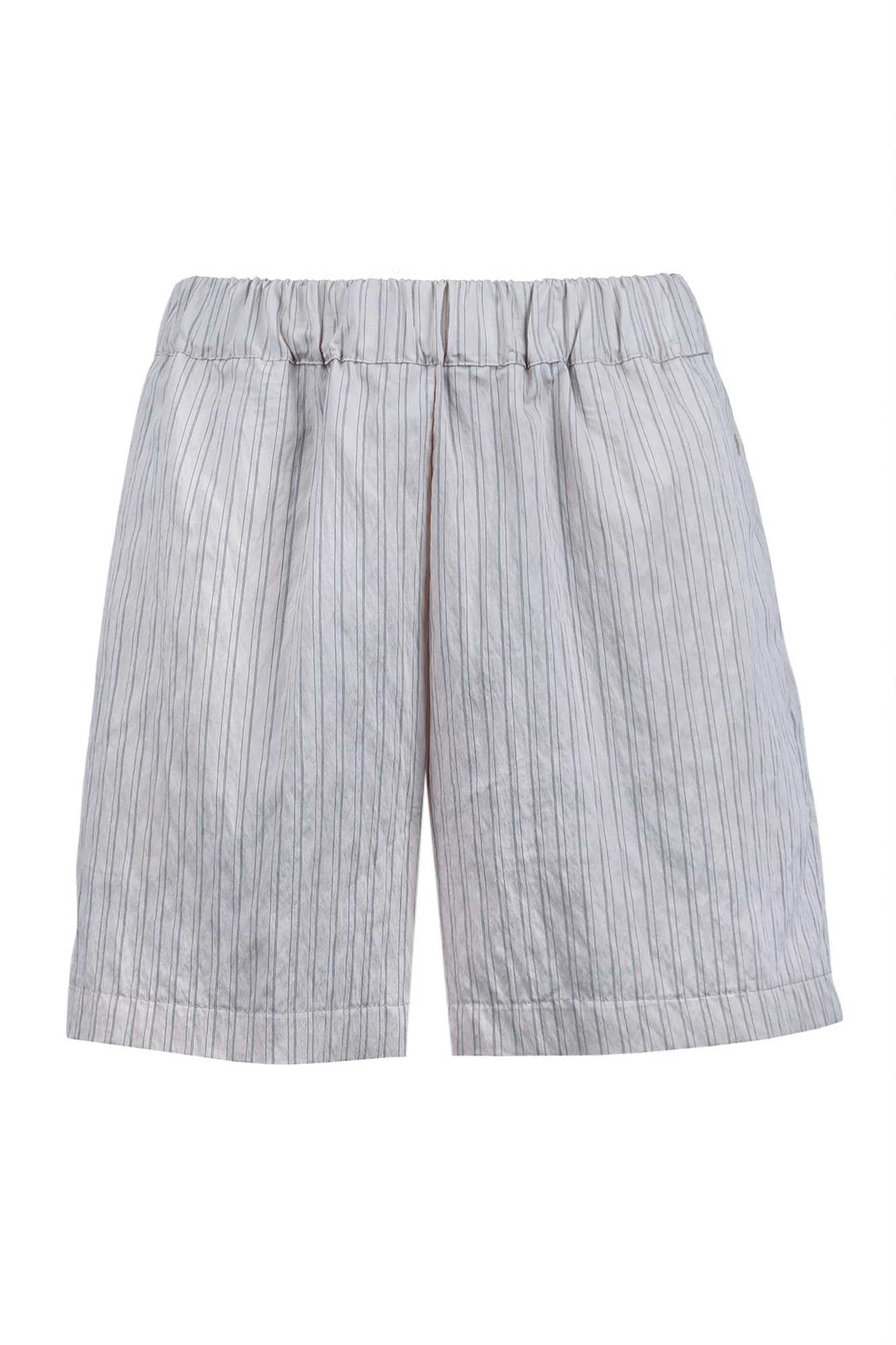 Short a righe in tessuto testurizzato. Vita alta elasticizzata. Motivo gessato a rghe. Tasche laterali a filetto. Tessuto con texture effetto stropicciato. Composizione tessuto: 80% Modal; 17% Poliammide; 3% Poliestere. Vestibilità: regolare. Made in Italy. La modella indossa una taglia 40 ed è alta 175 cm. Un capo versatile e confortevole, perfetto per un look estivo chic.Nessuna informazione disponibile