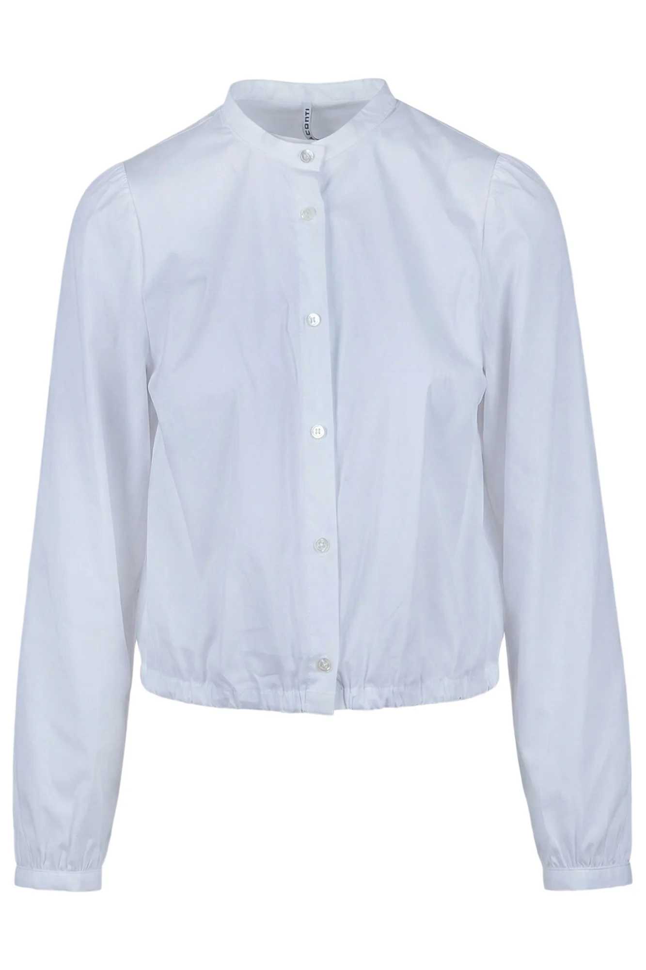 Camicia Faye. Collo alla coreana. Maniche lunghe con spalline leggermente arricciate. Chiusura frontale con bottoni. Fondo elasticizzato. Composizione tessuto: 68% cotone; 28% poliammide; 4% elastan. Vestibilità: regolare. Made in Italy. La modella indossa una taglia 40 ed è alta 175 cm. Un capo versatile e raffinato per un look casual-chic.Nessuna informazione disponibile