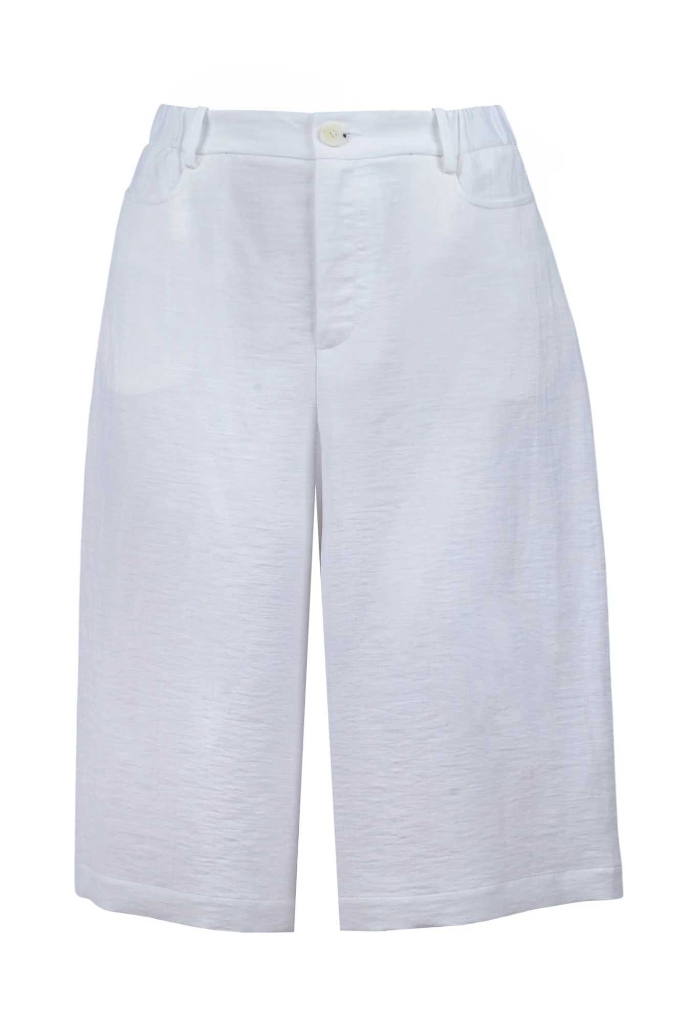 Bermuda a gamba ampia. Vita alta con passanti. Vita posteriore elasticizzata. Chiusura frontale con zip e bottone. Due tasche laterali. Due tasche posteriori. Cavallo basso. Gamba ampia. Larghezza fondo: 36 cm. Composizione tessuto: 53% viscosa; 38% lino; 9% poliammide. Vestibilità: regolare. Made in Italy. La modella indossa una taglia 40 ed è alta 175 cm. Un capo versatile e confortevole, perfetto per le giornate più calde.Nessuna informazione disponibile
