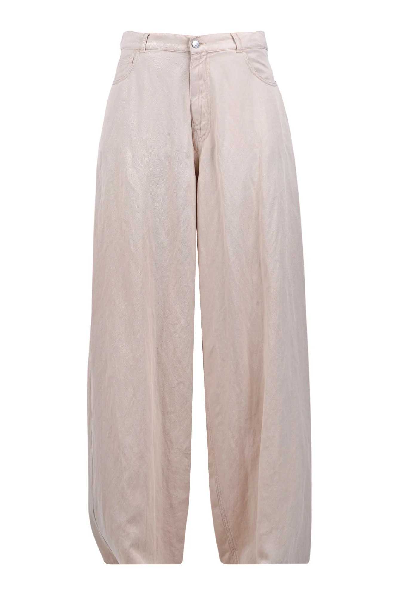 Pantalone a jeans a gamba ampia. Vita alta. Passanti per cintura. Chiusura con bottone e zip. Cinque tasche. Gamba ampia. Larghezza fondo: 28 cm. Composizione tessuto: 59% Lyocell (TENCEL®); 25% Lino; 16% Cotone. Vestibilità: ampia. Made in Italy. La modella indossa una taglia 40 ed è alta 175 cm. Un capo versatile e confortevole per un look casual e alla moda.Nessuna informazione disponibile