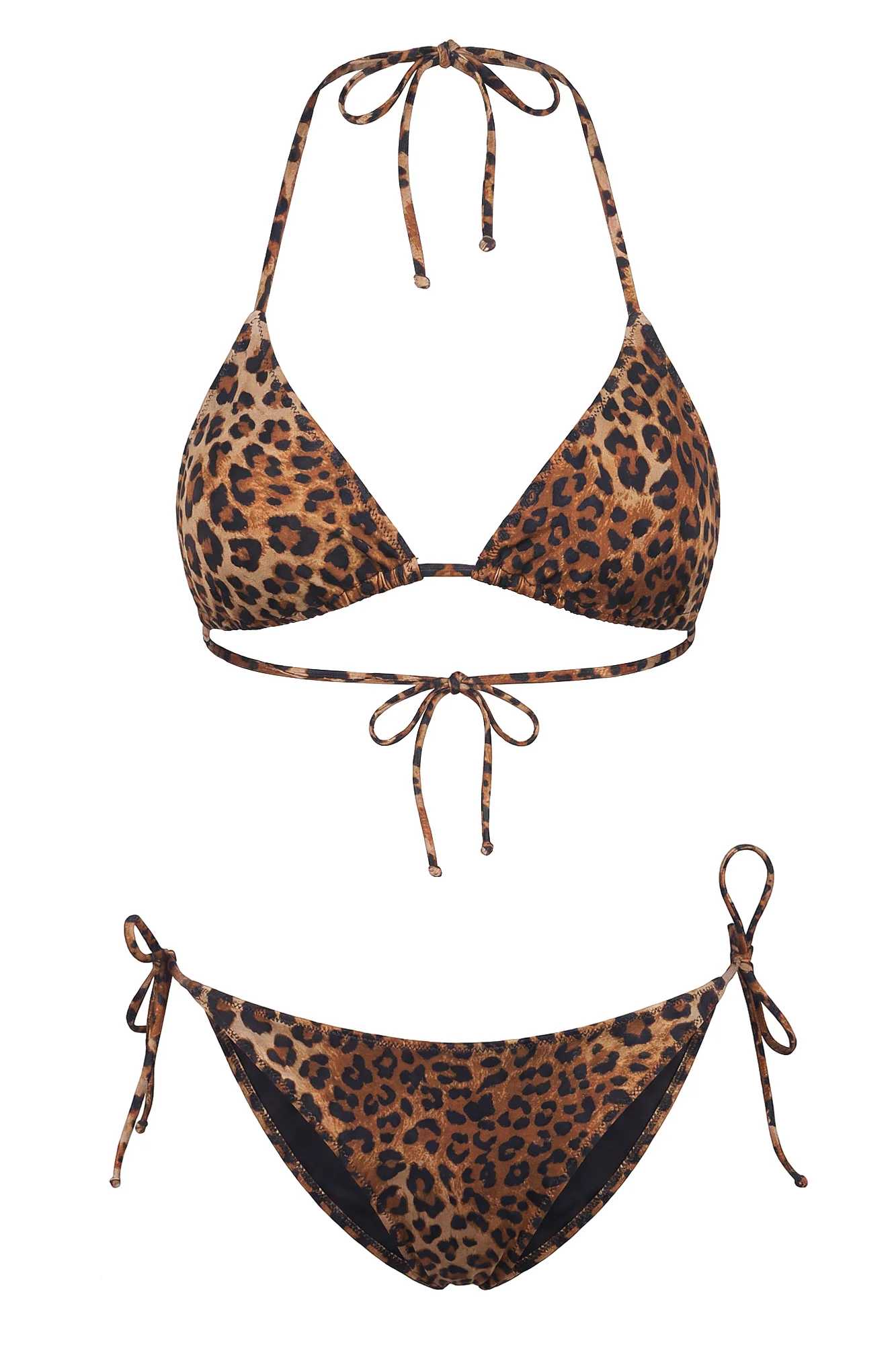 Bikini Virgo+Leah Leopard. Top a triangolo scorrevole con coppe removibili. Spalline sottili regolabili, da annodare dietro il collo o dritte. Slip classico a vita media con laccetti laterali regolabili. Stampa leopardata. Composizione tessuto: 90% poliammide; 10% elastan. Vestibilità: regolare. La modella indossa una taglia S ed è alta 175 cm. Un bikini iconico e versatile, perfetto per le tue giornate al sole.Nessuna informazione disponibile