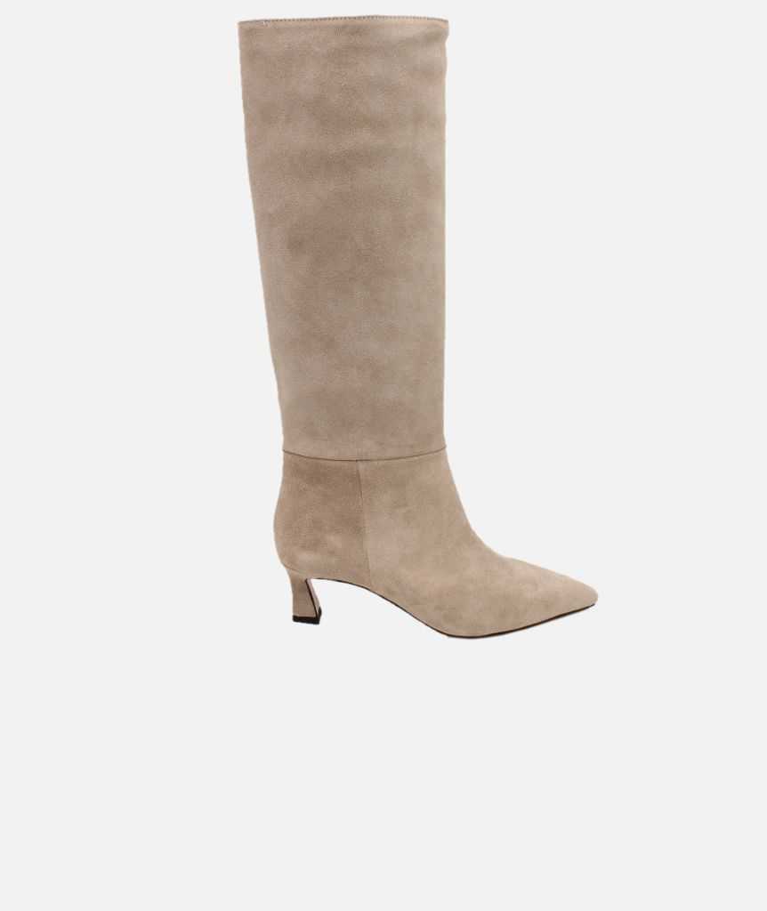 Cod. R1655 012880 BIANCA DI Stivale scamosciato Stivale gambale alto Con punta affusolata Scamosciato Con tacco basso Materiale:100% pelle scamosciata Misura: Tacco 6 cmNessuna informazione disponibile