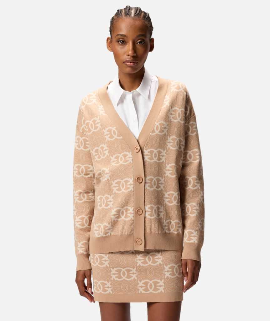 Cardigan oversize in maglia a maniche lunghe con bottoni tono su tono e polsini, abbottonatura e scollo a V a contrasto con lavorazione a costine. Il pattern logo Love Birds all over con lavorazione jacquard è un elemento d'impatto che arricchisce il modello. Il capo è stato sottoposto a prove di finissaggio per ridurre al minimo la possibile formazione di pilling, garantendo una maggiore morbidezza e durabilità del tessuto. Abbina questo capo raffinato e versatile alla gonna coordinata della stessa collezione, per un look che non lascia nulla al caso.
