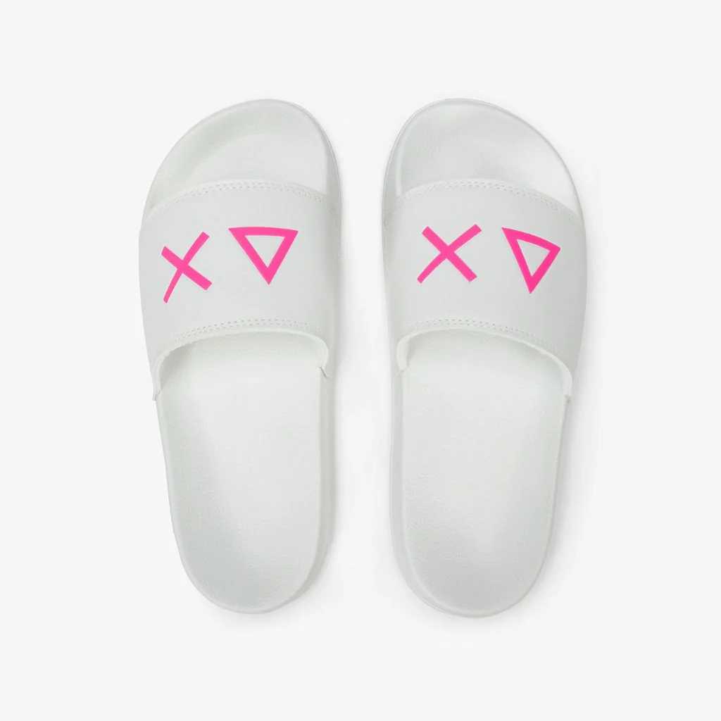 Sun68 Ciabatte Bianche Logo Fuxia X36210