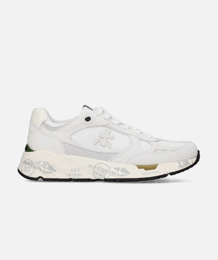Risentono del mood nineties, combinano una silhouette moderna con materiali pregiati e dettagli vivaci. Fedeli al design Premiata, ne conservano tutti gli elementi chiave: il logo che decora i laterali, la scritta MASE che si evince sulletichetta, trattamenti e dettagli a contrasto che ne risaltano la visibilità.