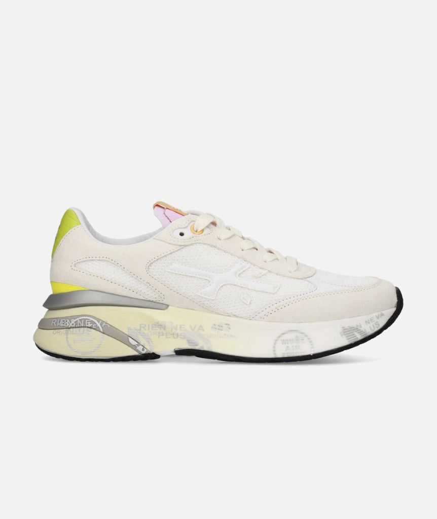 Ideate per stupire. La Moerun si basa sulla leggerezza del movimento, la stabilità e la sensazione ammortizzante data dall'innovazione del fondo. La nuova silhouette è ricca di dettagli: logo sul laterale esterno, scritta PREMIATA sul laterale interno e nome del modello sull'etichetta.
