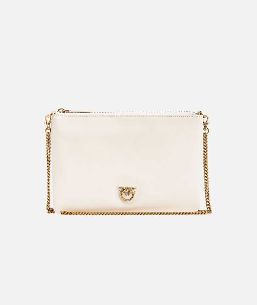 Borsa a tracolla flat in morbida pelle mano seta. Personalizzazione con placchetta Love Birds Diamond Cut. Interno foderato in polycotton e tracolla rimovibile a catena sottile. Chiusura con zip.