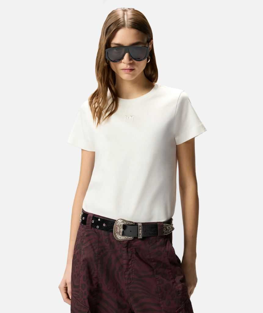 Cod. 100355 A339 014305 PINKO T-shirt con logo Love Birds T-SHIRT BUSSOLOTTO-100355A339-Q48 Composizione: 1° Tessuto Esterno: COTONE 100% - 2° Tessuto Esterno: COTONE 100%Nessuna informazione disponibile