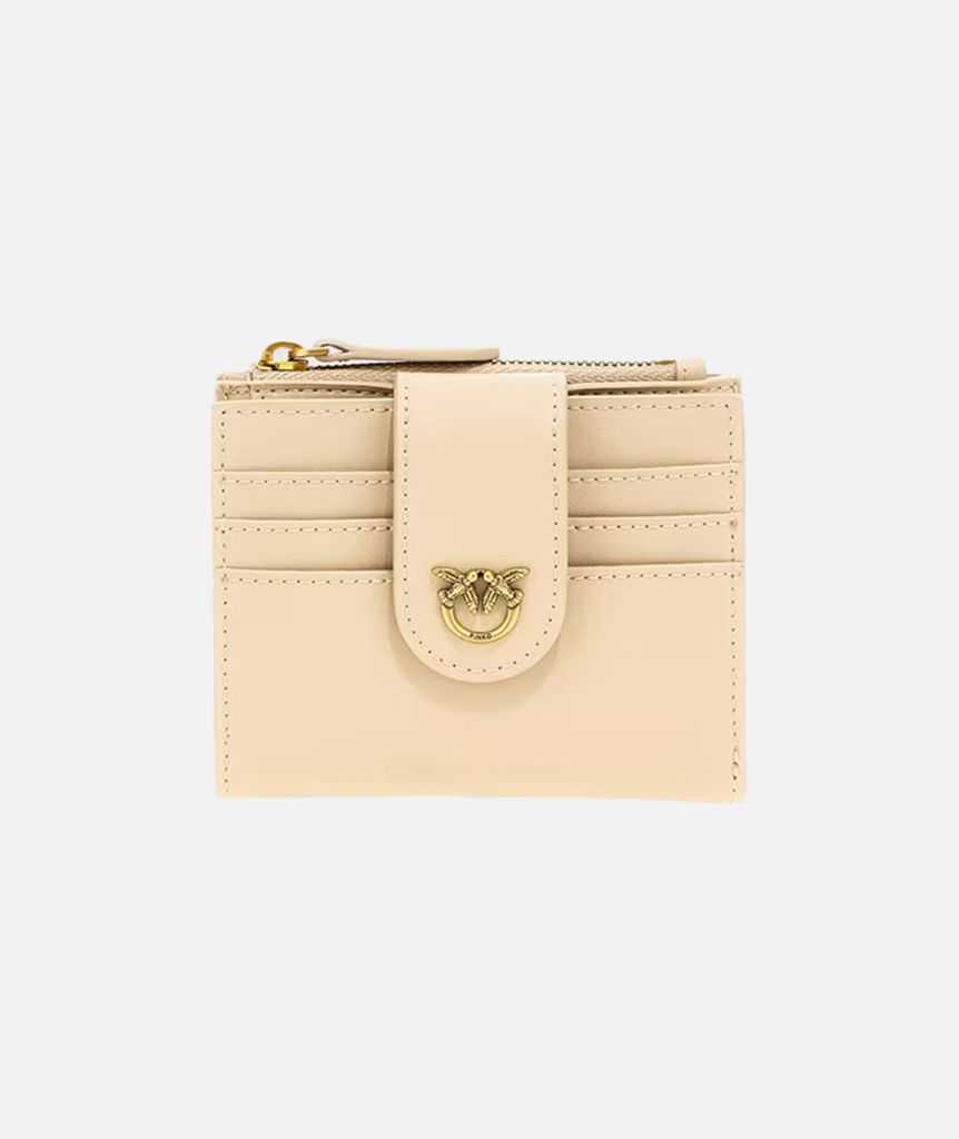 Piccolo portafoglio dalla forma squadrata in morbida pelle dalla particolare texture liscia che comprende numerosi spazi per carte di credito e documenti e una tasca portamonete chiusa con zip. La chiusura con piccola fascia è personalizzata con placchetta logo uccellini Love Birds in metallo, che aggiunge un tocco iconico a un accessorio da aggiungere alla tua borsa. Attiva il tuo accessorio PINKO: verifica l'autenticità del tuo prodotto e accedi all'esperienza personalizzata avvicinando il tuo smartphone al ricamo Love Birds che trovi sul retro.