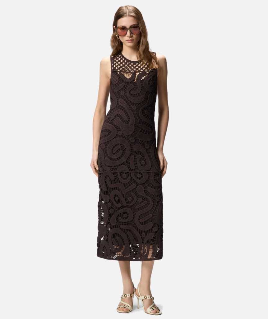 PINKO - Abito midi senza maniche in crochet geometrico