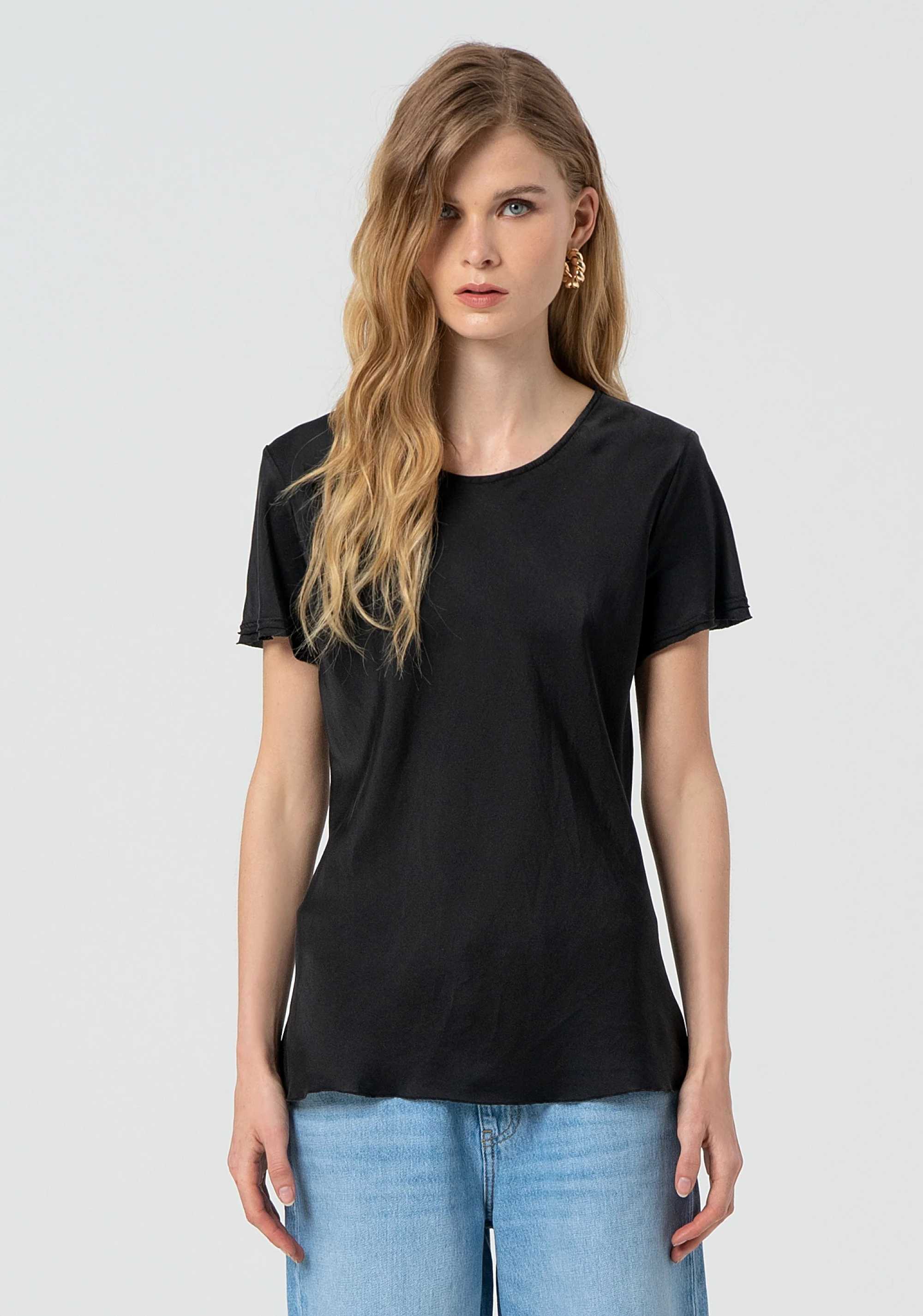 T-shirt regular in raso, girocollo, e con maniche corte.