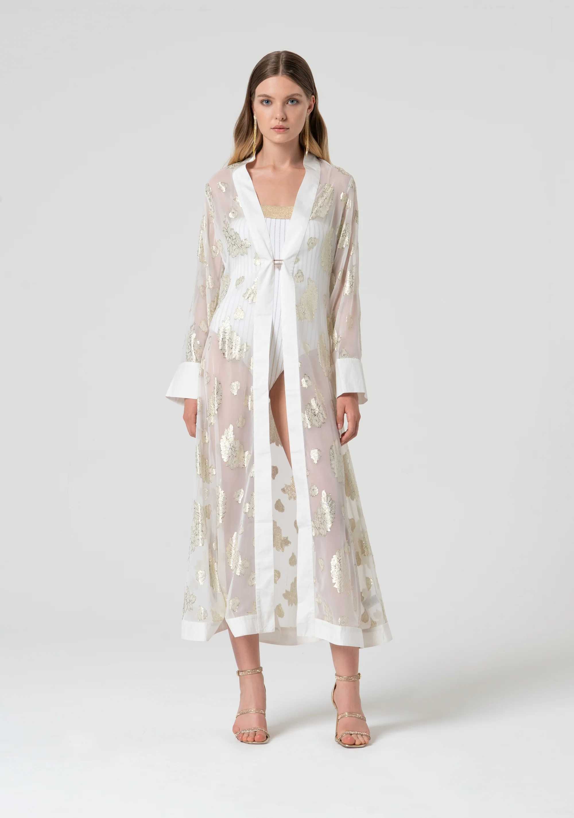 Kaftano regular lungo con lurex, e con maniche lunghe.