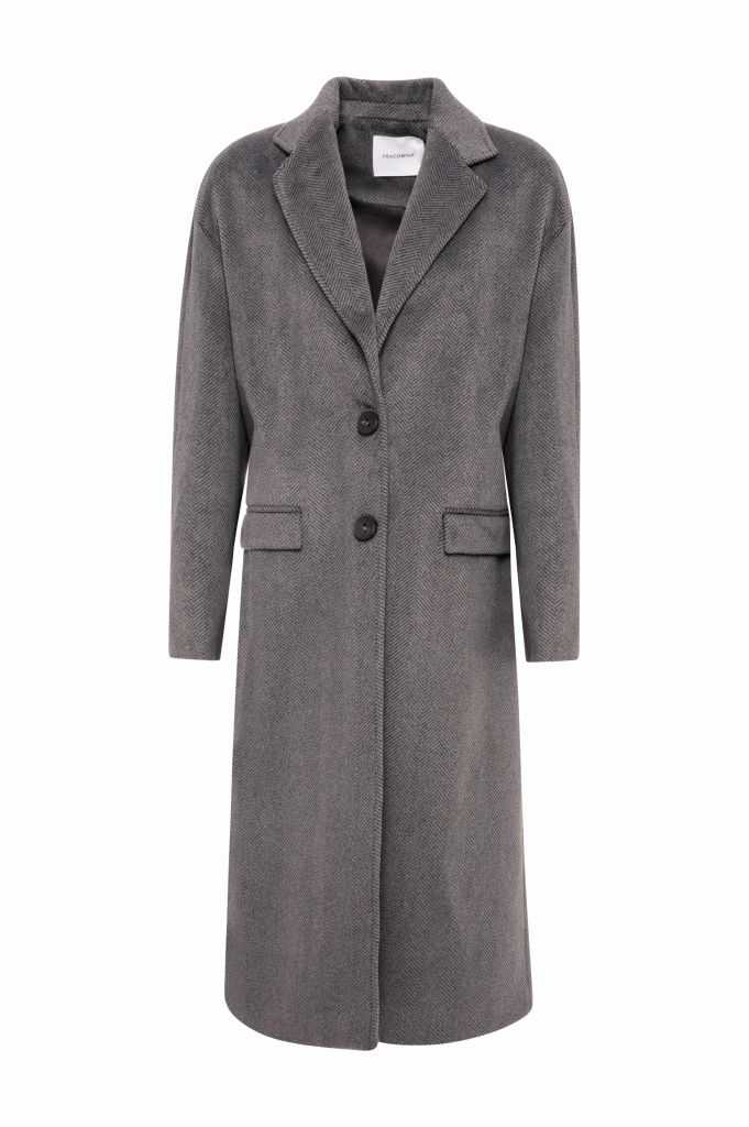 Un classico intramontabile che unisce tradizione e stile contemporaneo, questo cappotto lungo è il capo essenziale per affrontare le stagioni fredde con eleganza. La sua sofisticata tonalità , arricchita dalla lavorazione a spina di pesce, lo rende un pezzo versatile e di grande impatto. Il design presenta un taglio dritto e una vestibilità leggermente over, che garantisce comfort e libertà di movimento. I revers classici e la chiusura a doppio bottone scuro creano un'estetica pulita e raffinata. Le maniche a raglan contribuiscono a una linea delle spalle morbida e naturale, mentre le due tasche con patta sui fianchi aggiungono un dettaglio funzionale. La lunghezza al ginocchio o appena sotto lo rende perfetto per essere indossato sopra abiti, gonne o pantaloni. Un piccolo logo metallico è applicato discretamente sul retro del collo, un tocco di classe che denota l'attenzione ai dettagli del brand. Questo cappotto è l'investimento perfetto per un look da ufficio formale, per uscite eleganti o per dare un tocco sartoriale a un outfit casual.