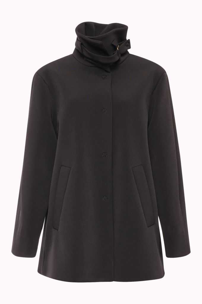 Cappotto Corto con Collo Alto a Imbuto e Fibbia