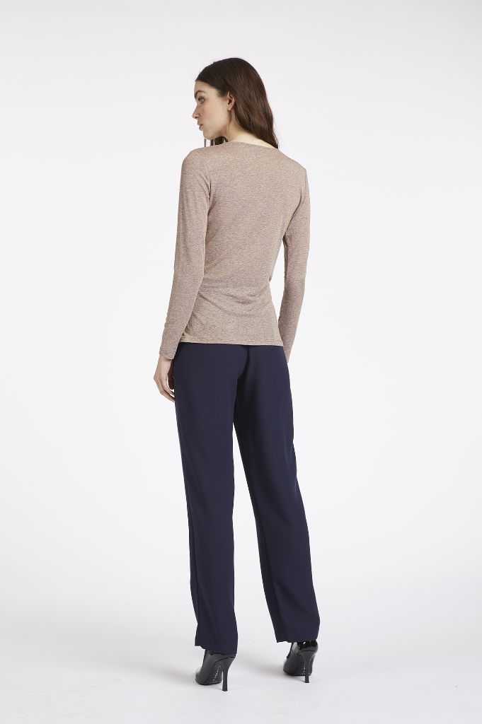 T-shirt a manica lunga e scollo incrociato in jersey di viscosa lurex. Per un look splendente e mozzafiato