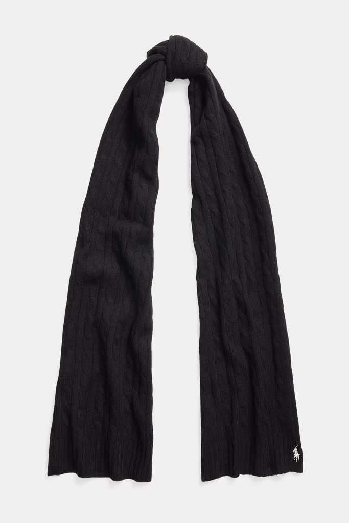 Questa confortevole sciarpa a trecce in misto lana e cashmere sfoggia estremità lavorate a coste e il nostro esclusivo pony ricamato.