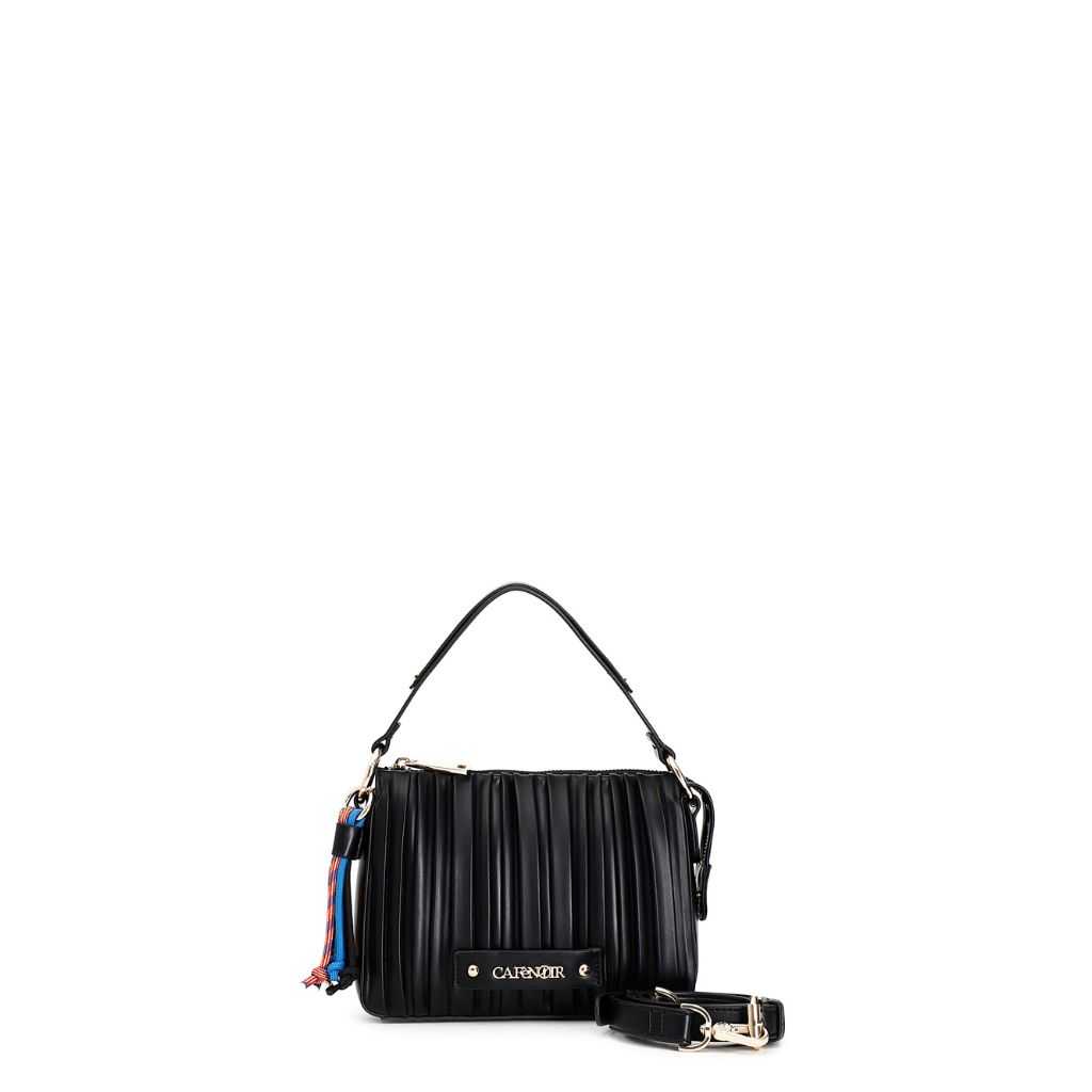 pochette plissettata con manico a treccia nero