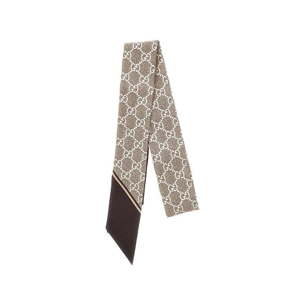 Foulard realizzato in pura seta con motivo GG laminato in jacquard. Estremità rifinite in twill a tinta unita.