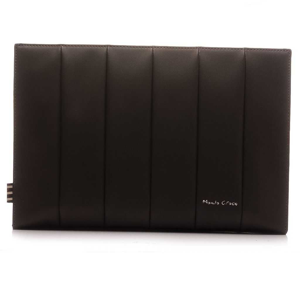 Borsello Manila Grace fatto in poliuretano con chiusura zip e tracolla. Colore testa di moro. Dimensioni: altezza 21cm, lunghezza 32cm, profondità 4cm.