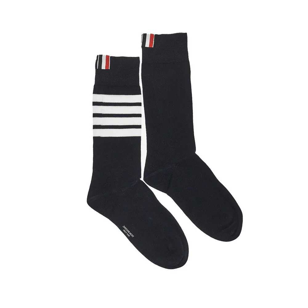 Calzini a metà polpaccio realizzati in leggero filato di puro cotone, arricchiti dall'iconico intarsio 4 Bar a contrasto. Bordo rifinito in micro costine e dettaglio in nastro tricolore.
