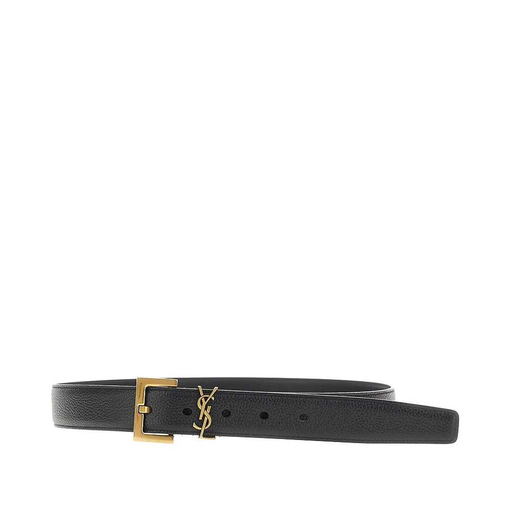 Cintura realizzata in pelle martellata, caratterizzata dalla fibbia squadrata e dal passante con logo Cassandre in metallo finitura oro anticato.