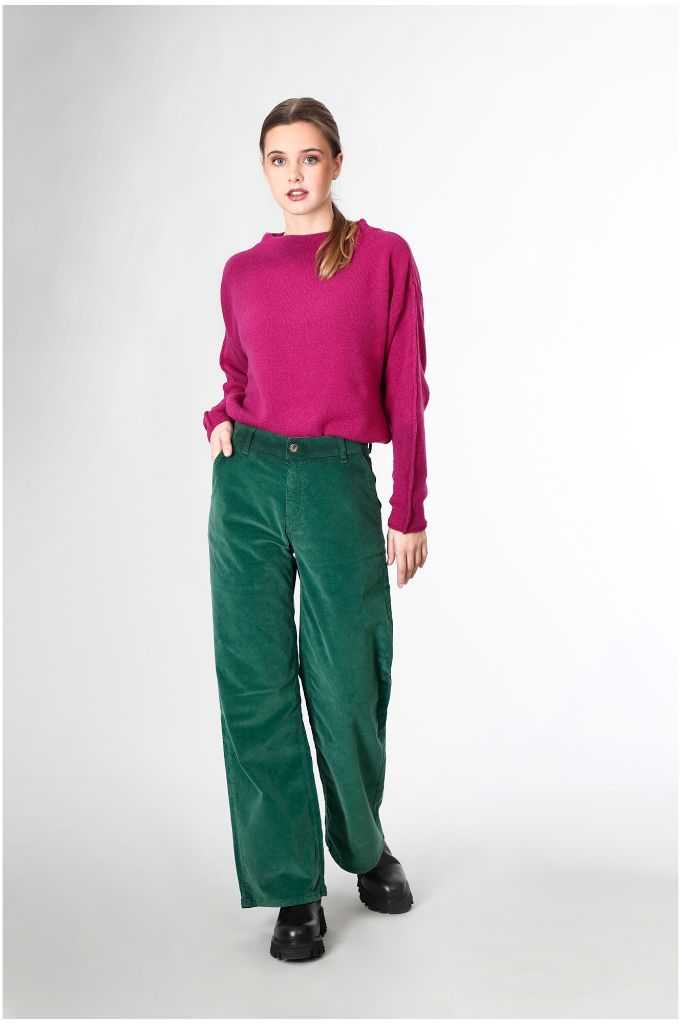 pantalone wide leg in velluto tinto capo bottiglia