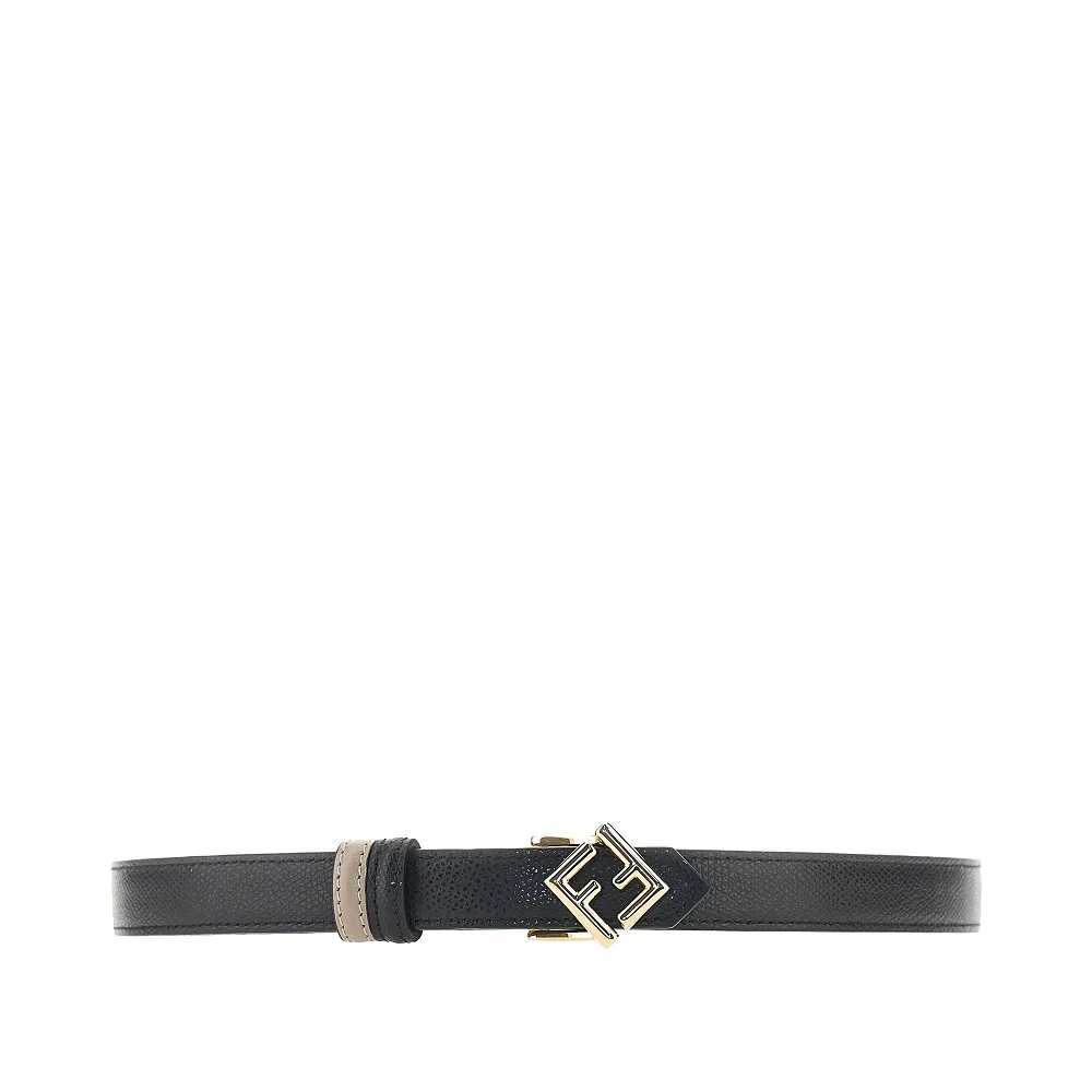 Cintura reversibile realizzata in pelle granata da un lato (nero) e in pelle liscia con motivo FF goffrato dall'altro (beige). Fibbia FF a perno in metallo con finitura oro.