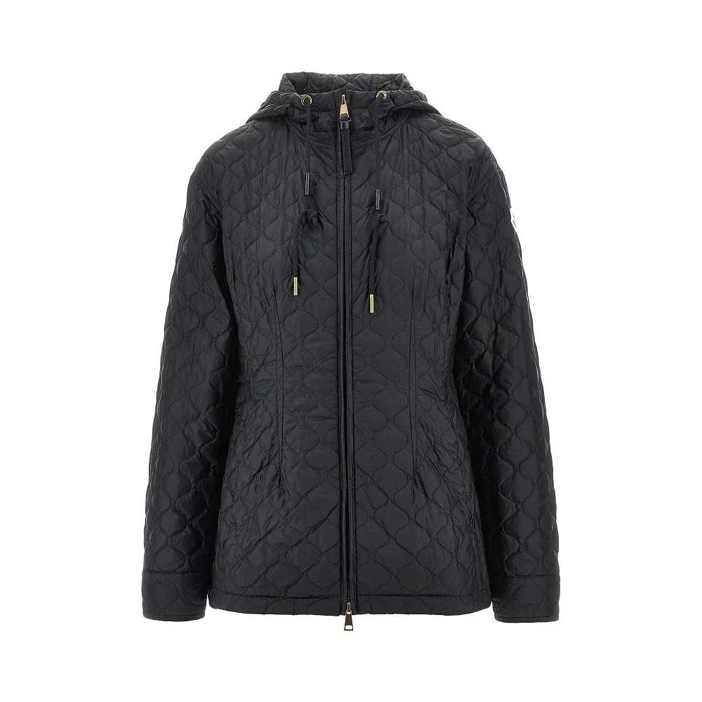 Giubbino realizzato in longue saison idrorepellente con leggera imbottitura in piuma e trapuntatura a diamante ondulata. Chiusura zip a doppio cursore, cappuccio con coulisse, tasche a filetto, polsini con bottone a pressione e patch logo sulla manica. Silhouette slim con lunghezza al fianco.