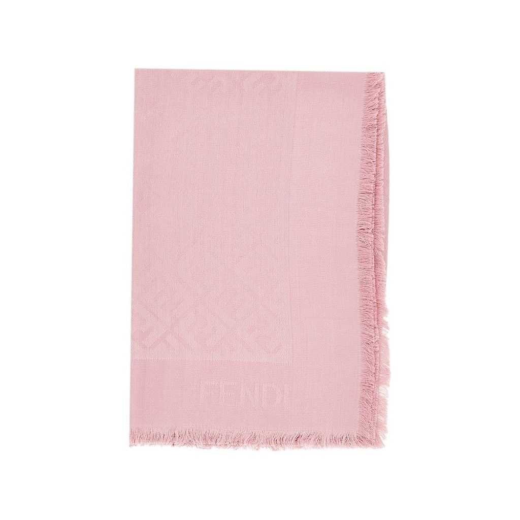 Scialle quadrato realizzato in morbido tessuto di misto lana e seta con motivo FF in jacquard. Bordi sfrangiati.