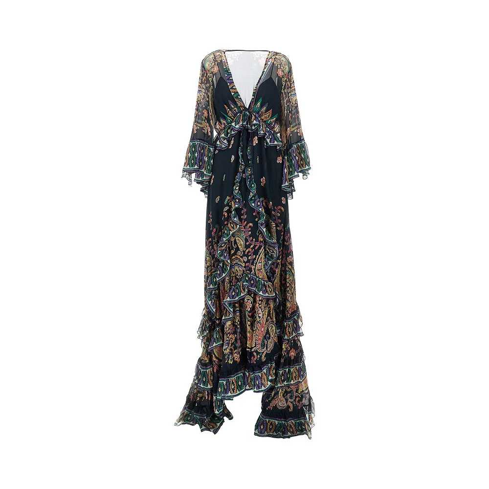 ETRO - Abito lungo in seta stampa Paisley foliage