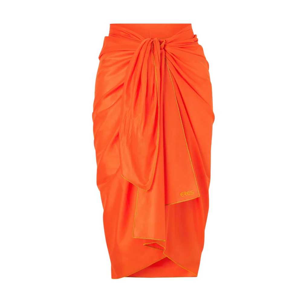 Pareo rettangolare realizzato in leggero voile di cotone con profilo rifinito a contrasto. Piccolo logo lettering stampato su uno degli angoli.