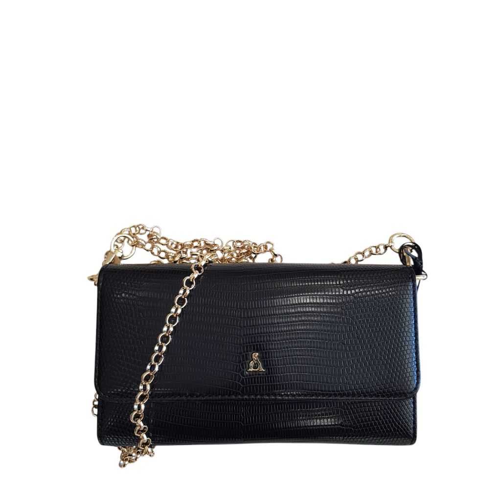 Portafogli nero con funzione anche tracolla Rif. 1023 DIMENSIONI: 19X12X3
