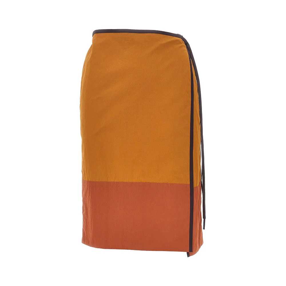 Gonna a matita realizzata in nylon con motivo color-block, caratterizzata dal design a portafoglio con chiusura annodata sul fianco. Silhouette dritta e regolare con lunghezza al ginocchio. Tasche inserite nelle cuciture laterali. Sfoderata.
