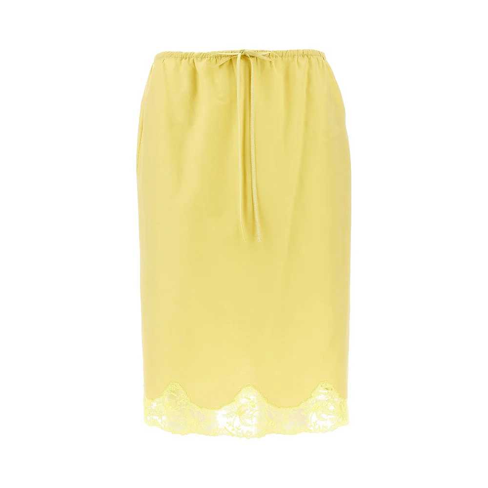 Gonna stile sottoveste realizzata in leggero popeline di misto cotone e seta, arricchita dall'orlo in pizzo. Vita regolabile con coulisse. Silhouette dritta e regolare con lunghezza al ginocchio. Sfoderata.
